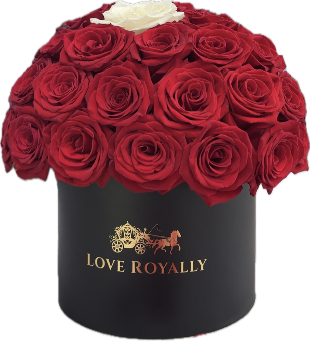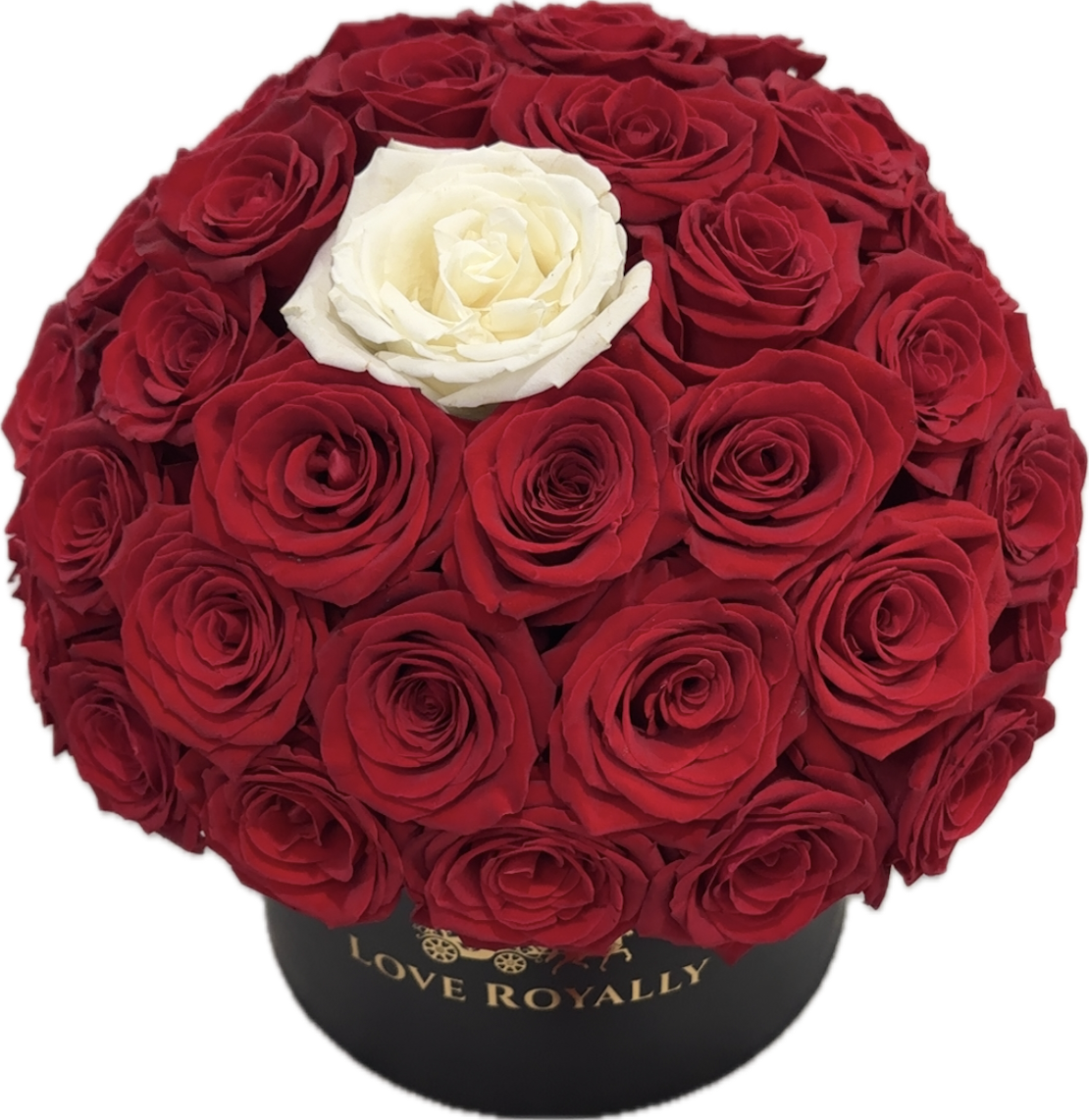 Embark on a journey of timeless romance with our One True Love Rose Box. This exquisite arrangement, adorned with a single pristine white rose nestled amidst the vibrant hues of our Rosa Prima Freedom roses, symbolizes the enduring bond of true love. As the centerpiece of the arrangement, this singular rose represents "the one," capturing the essence of devotion and eternal commitment. With its captivating colors and timeless allure, this arrangement is a heartfelt tribute to the profound connection shared between soulmates.